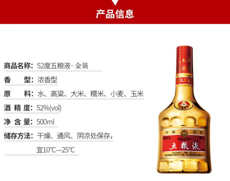 “以金装,致金砖”,金装五粮液献礼金砖国家贵宾佳客,多次作为到访五粮液的外交官礼品。金装五粮液在传承五粮液高品质基础上,对其包装及口感进行了全面升级、“优中选优”,具有非常明显的典雅、高贵气质。