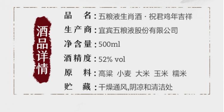 五粮液·祝君鸡年吉祥 52度500mL