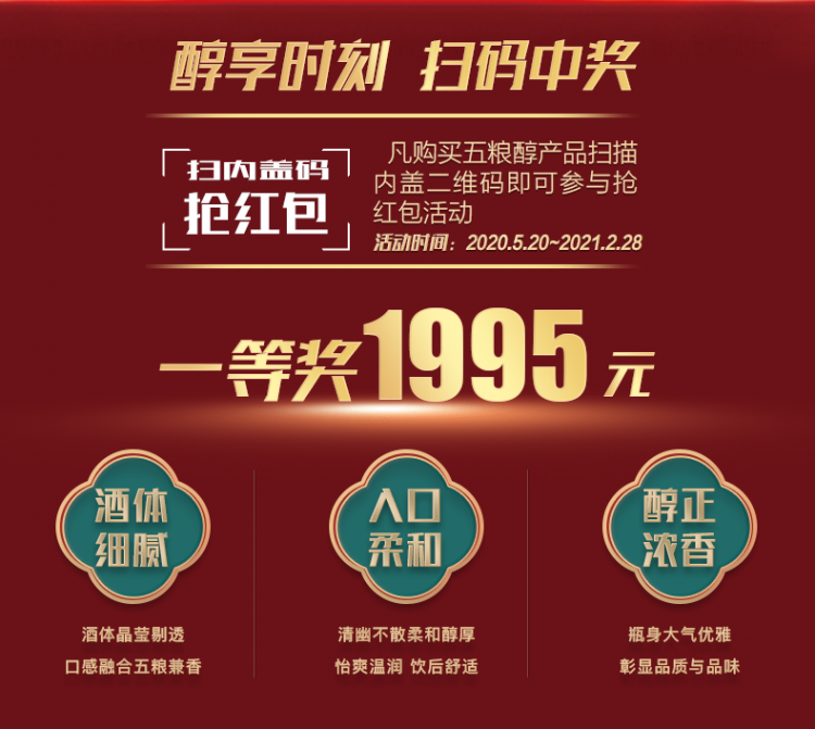 金质生活,行家之选。在继承五粮液品质醇正、口感醇香的同时,以中价位高性价比满足更多消费者的需求,传递 “醇香中国,美好生活” 的品牌理念。